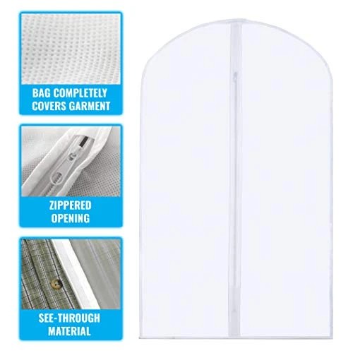 - Foldable for a versatile storage solution: Each garment bag completely covers clothing, helping keep garments clean and wrinkle-free. The front zipper enables easy access to garments and the opening at the top of the bag allows for a coat hanger.