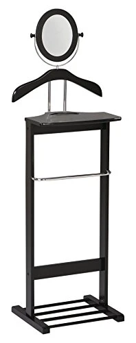 KB Designs – Black Wood Suit & Tie Freestanding Valet Stand, Clothing Organizer Rack
