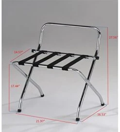 KB Designs – Folding Suitcase Luggage Rack With Support Bar, Chrome