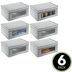 MDesign Fabric Stackable Slim Shelf Storage Organizer Box With Window/Attached Lid For Organizing Bedroom Closet – Holds Purses, Linens, Accessories – Lido Collection – 6 Pack, Cream/Espresso Brown