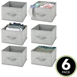 MDesign Fabric Bin For Cube Organizer – Foldable Cloth Storage Cube – Collapsible Closet Storage Organizer – Folding Storage Bin For Clothes And More – Lido Collection – 6 Pack – Gray