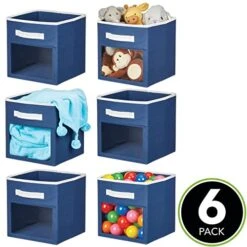 MDesign Fabric Nursery/Playroom Closet Storage Organizer Bin Box With Front Handle/Window For Cube Furniture Shelving Units, Hold Toys, Clothes, Diapers, Bibs, Jane Collection, 6 Pack, Navy Blue/White