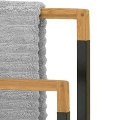 MyGift 16 Inch Rustic Torched Wood Towel Ladder For Kitchen Countertop, Hand Towel Stand Rack