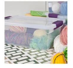 Sterilite 15 Quart ClearView Latch Storage Container With Sweet Plum Handles