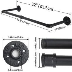 WEBI Clothing Rack Wall Mount,32” Industrial Pipe Clothes Rack For Hanging Clothes,Heavy Duty Iron Garment Rack Bar,Retail Display Clothes Rod For Closet,Laundry Room,Black