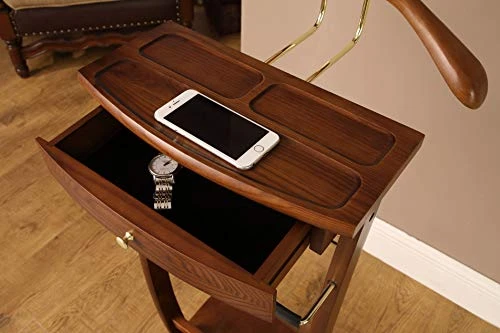 - 【Exquisite Solid Hardwood Construction】Crafted from genuine, high-quality hardwood, this valet stand exudes a classic appeal that resonates with timeless elegance. The semi-gloss walnut finish adds a touch of sophistication, elevating its visual allure and making it a seamless addition to any room decor.