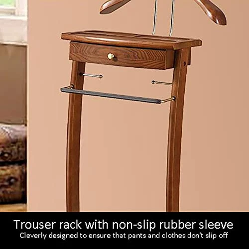 - SOLID WOOD VALET STAND: The valet stand is made of pure natural solid wood, hand cut and polished by artisans, the surface retains the grain of the wood, it looks noble and luxurious, enhances your home decoration.Sturdy and stable construction allows the valet stand to last for many years.