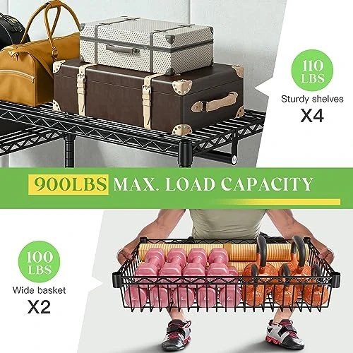 - 【Adjustble Feet & Anti-dumping Kits】The heavy duty closet organizer system has 4 adjustable feet to protect the floor from scratches and keep stable. We also have two anti-fall locks for you, and you can choose to fix to the wall.