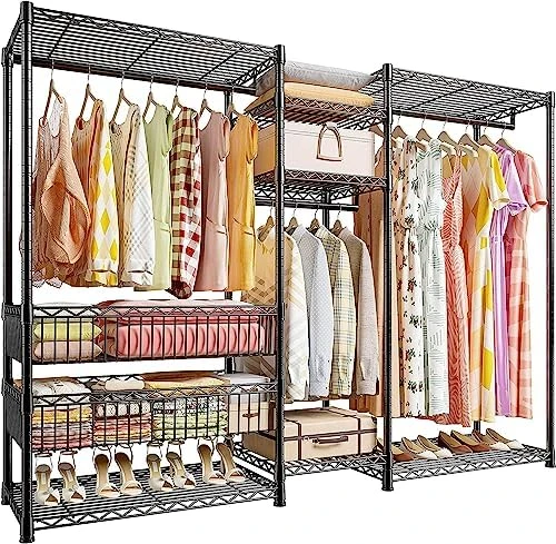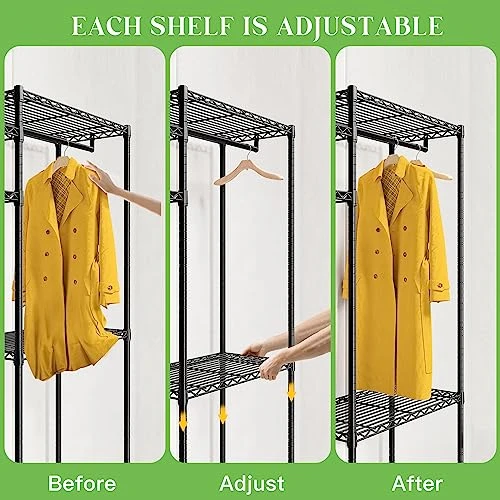 - 【Adjustable DIY Clothes Rack for Adult Clothes】Adjustable shelves allow this garment rack to be combined in more ways to fit large or small spaces.77inch height is completely possible to keep your clothes vertical and wrinkle-free, always neat and tidy, like new.