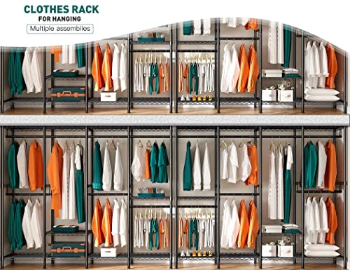 - 【ADJUSTABLE AND DETACHABLE SHELVES AND HANGER】: The hanging rod and shelves of the heavy duty clothes rack can be adjusted by moving the position of the clips, and the shelves or hanger rod can also be removed. If you have more needs for hanging clothes or stacking storage, It can be adjusted or removed at will.