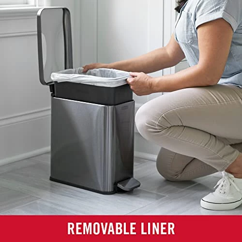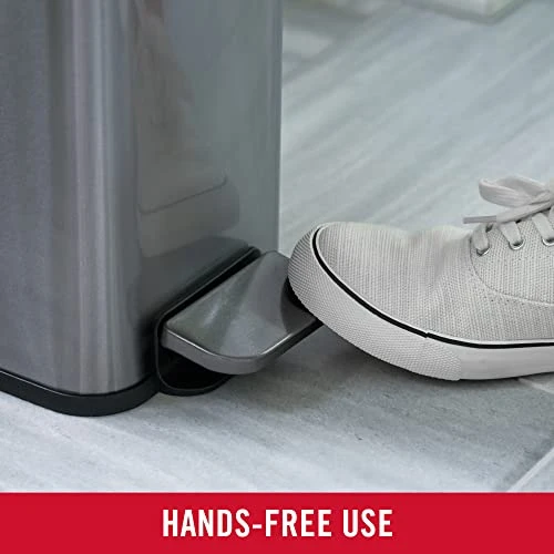 - HANDS-FREE USE: The charcoal stainless-steel foot pedal stands up to daily use and removes the need to touch the lid during waste disposal to keep hands clean.
