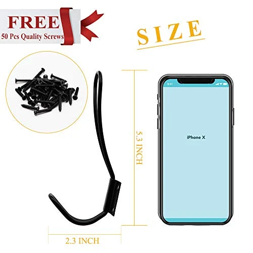 - PACKAGE CONTENTS: includes 12 pieces black double coat hooks and 48 pieces supporting screws, each hook equipped with 4 pieces screws, enough to meet your installation needs