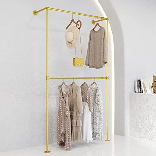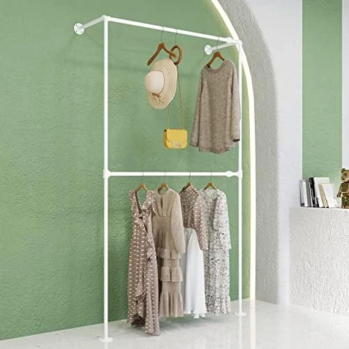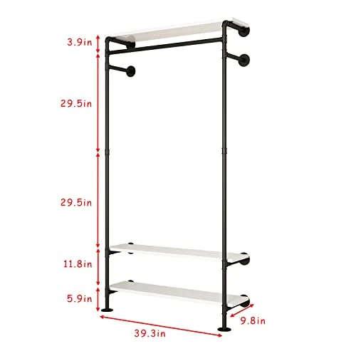 - 【Dimension】The wall pipe clothing rack size: 39.3 “x 9.8” x 80.8 “. The wider distance prevents clothes garment rack from touching the wall, so you can hang clothes easily.