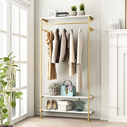 - 【 Large Storage】 This industrial clothes rack not only has enough hanging area to hang clothes, but also provides enough space for everyday accessories. The upper layer can be used for decorations, and the lower layer can be used for shoes, bags, baskets, luggage, etc. Neat arrangements allow for extra storage space.