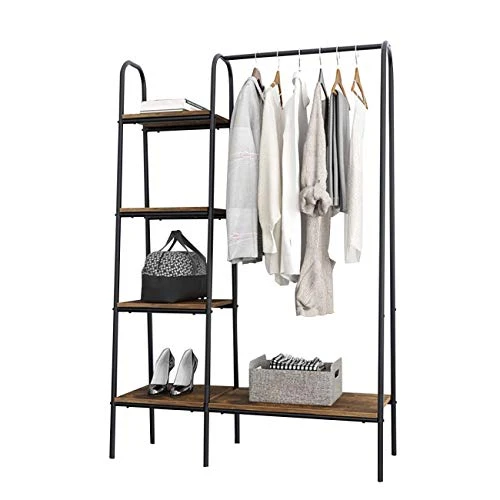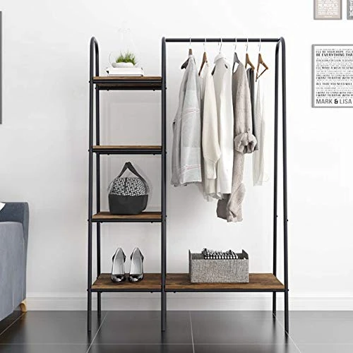 - 【Ample Storage Space】: 1 large shelf can hold boxes, shoes. 4 small shelves can store folded clothes, bags, boxes, and can be moved to where you want to put it.Extra under shelf space can also hold shoes. With hanging rod, it can hang skirt, dress, scarves and other clothes.
