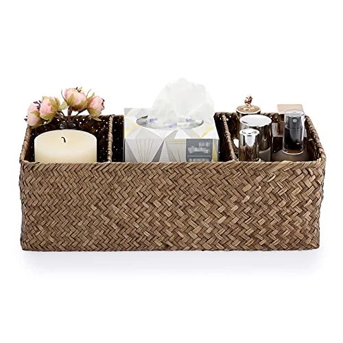 - Compartment Design – The storage basket with 3-compartments handy to storage and organize your items in a beautifully desktop organize basket from a messy and clutter countertop. A open compartments basket could serve multiple functions and help you classify and reach different items to fit more your storage ideas.