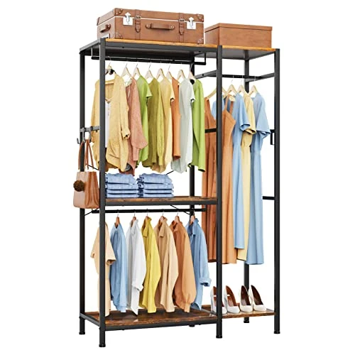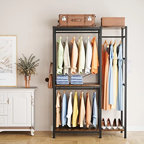 - 【Spacious and Functional】:Keep your clothes organized and easily accessible with this top-of-the-line hanging clothes rack.Featuring multiple compartments and shelves, it’s the perfect way to store your clothes, shoes, and accessories all in one convenient location.