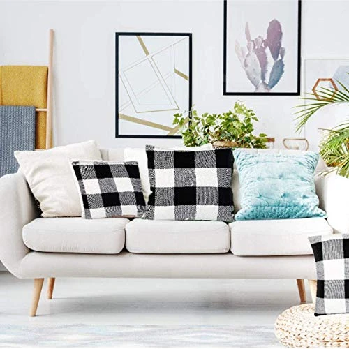 - ❤❤❤DESIGN : Farmhouse Buffalo Check Plaid style,Same fabric on front and back, classic buffalo checked pattern lines up on all sides, inside edges are serged to prevent fraying