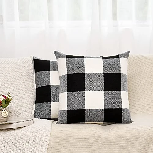 - Durable Material – Made of durable THICK Cotton Linen cloth material. Black & White Buffalo Check Plaid Pillow Covers.