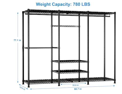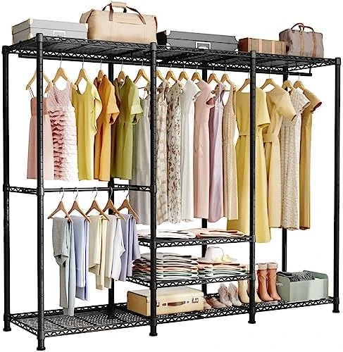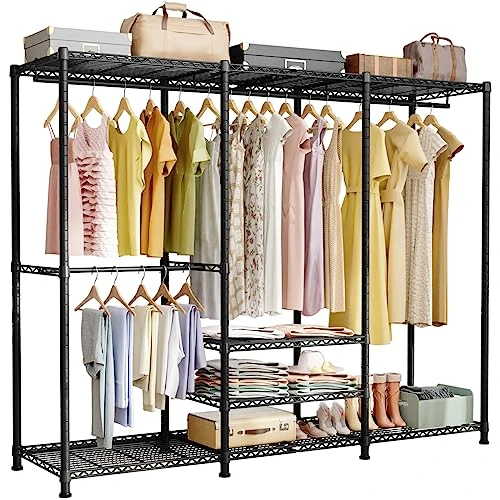 - [Stable & Long-lasting]: Made of carbon steel, this closet wardrobe rack is sturdy and durable. Meanwhile, this material makes the closet storage system anti-rust and waterproof