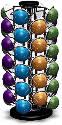- 360 DEGREE REVOLVING BASE VERY EASY TO ACCESS ANY COFFEE POD Large knob on top, Spins smoothly with just a touch, Very convenient to access any flavor of coffee.