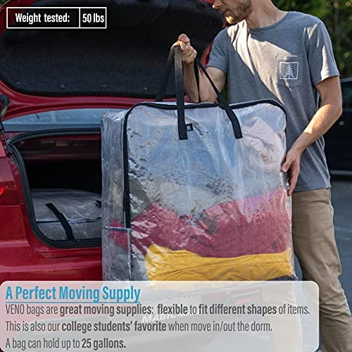 - MULTI-FUNCTIONAL: Essential for storing, moving, transporting, camping, organization, space saving, and travel. Great to use and store in the garage, closet, cabinet, basement, attic, and under your bed. Perfect for storing Christmas wreaths and decorations, transporting clothes and bedding when moving into your apartment or dorm, keeping outdoor cushions clean during harsh weather or in between parties, bringing blankets or gear for your camping trip, and hanging sports equipment in the garage.
