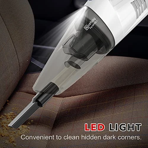 - 🏆【Cordless Design & LED Light】 This car vacuum cordless cleaner is portable (Weight: 2.2 Ib) to use free your movement for cleaning your home, car or narrow corners with no cable.The handheld mini vacuum can operate at low frequencies below 73dB, which sounds less annoying and gives you a quiet cleaning experience. The handheld vacuum cleaner has a large-capacity (500ml) dustbowl to meet the need of cleaning your entire car easily.Handheld Car vacuum cordless has bright LED lights, no more worries about being cleaning in a dimly lit corner or at night.