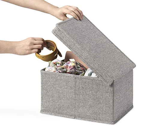 - Front sewn-on handle to easily move and slide the box off of shelves as and carry from one location to another